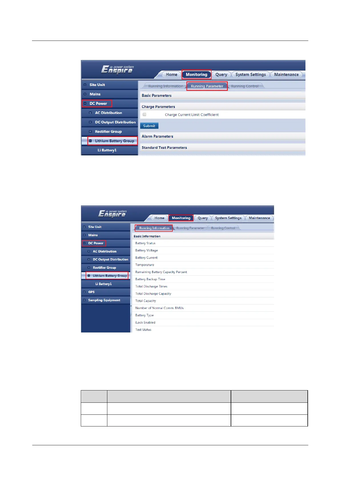 On the login page, choose Monitoring > DC Power > Lithium Battery Group > Running