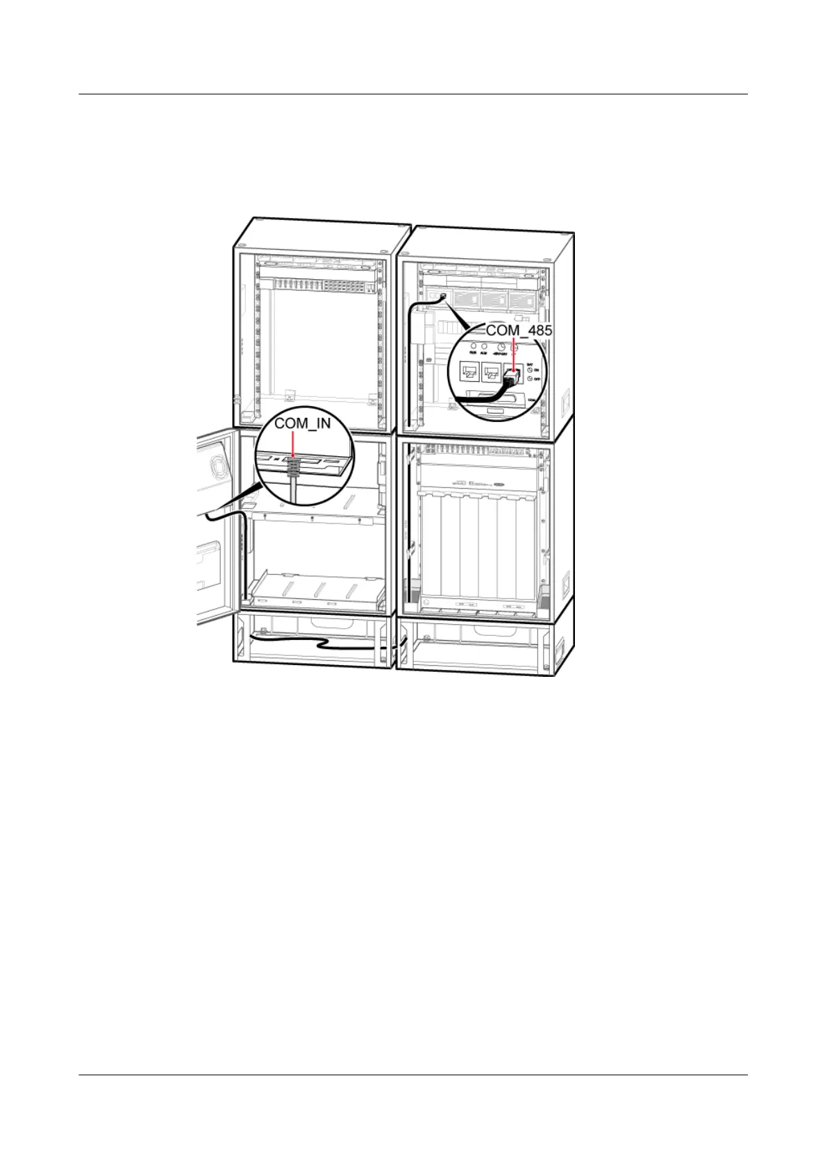 of the IBBS200D/IBBS200T and the other end to the COM_485 port on the PMU in the