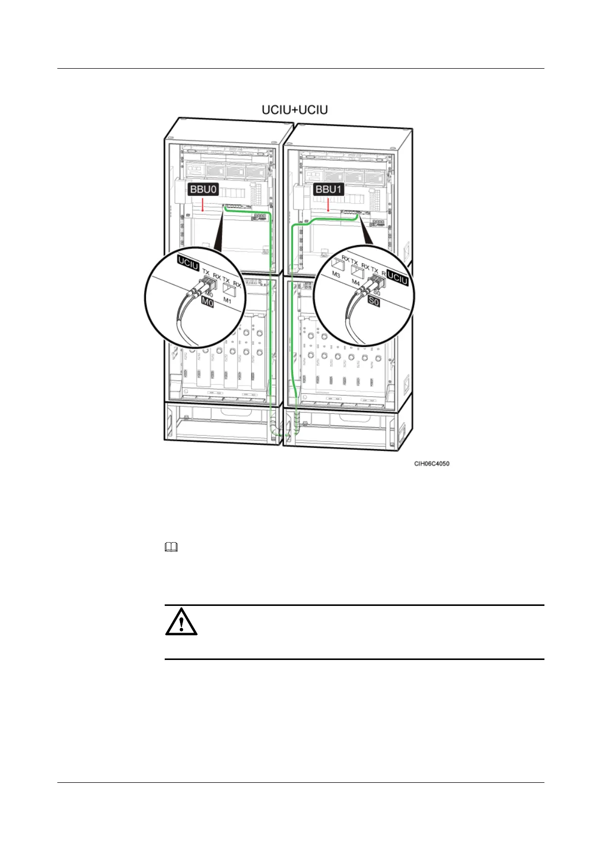 The TX and RX ports on one UCIU must be connected to the TX and RX ports, respectively.