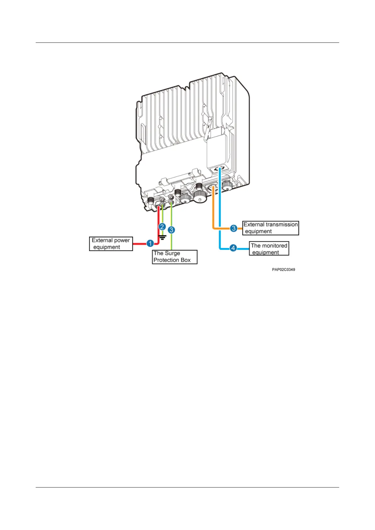 (1) BTS3902E power cable (2) PGND cable (optional) (3) Equipotential cable (optional)