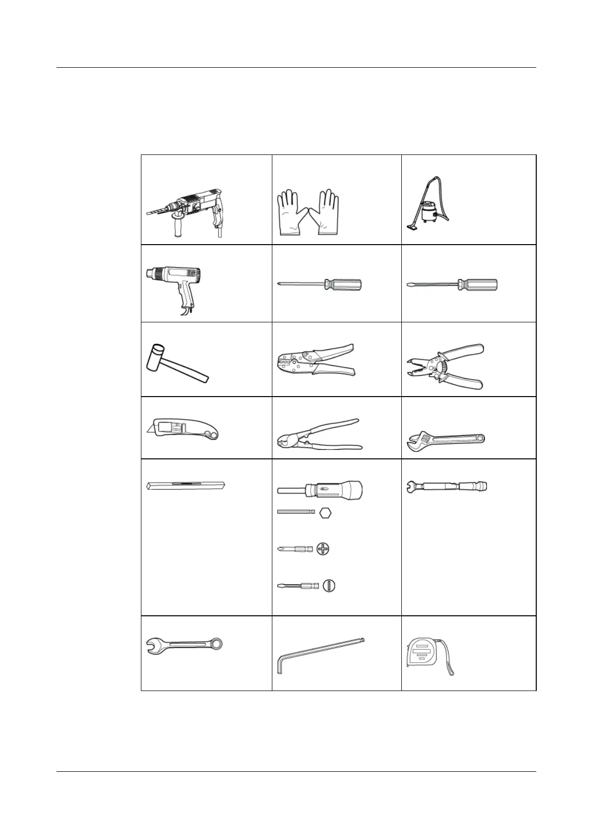 All required tools and instruments must be ready before the installation.