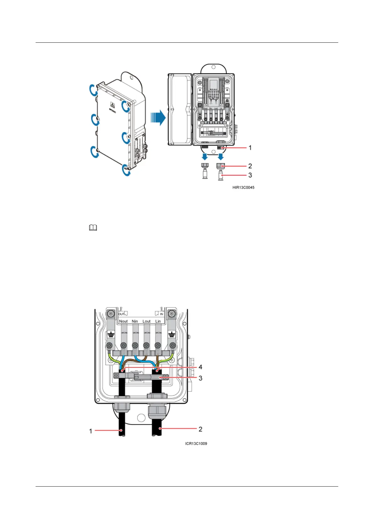 (1) PG connector (2) Thread-lock sealing nut of the PG connector (3) Waterproof block