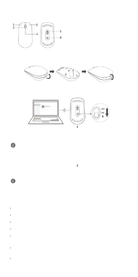 1. Turn the mouse over, and move the switch to the position and hold it there for 3