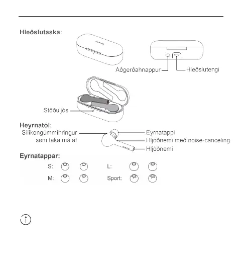 ● Þrjú pör af lausum eyrnatöppum fylgja með í stærðunum lítið, stórt og sport.