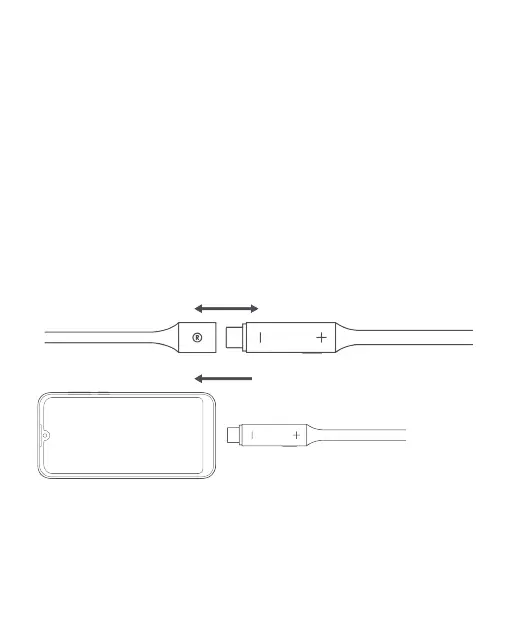 이어버드의 내장 USB Type-C 커넥터를 휴대폰에 연결한 이후: