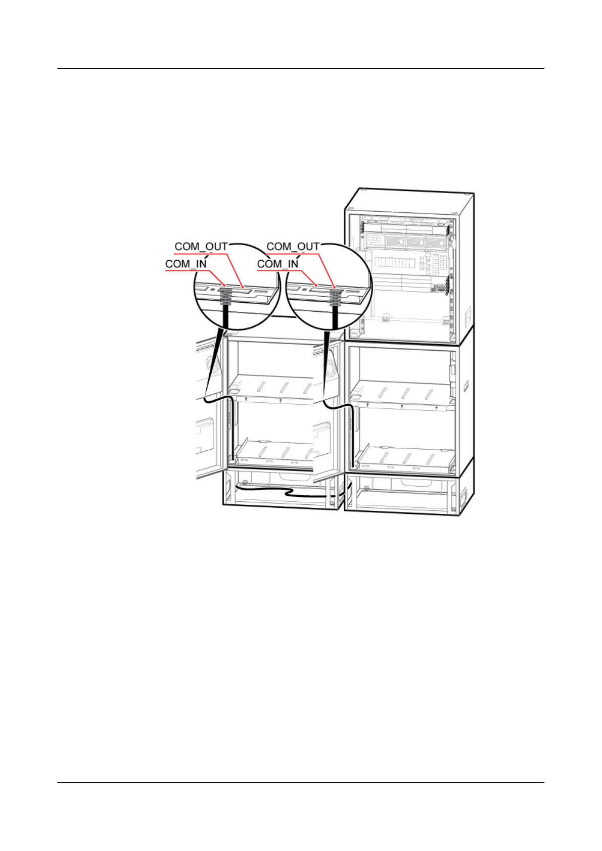 2. Connect the other end to the COM_IN port on the CMUA on the cabinet door of the second