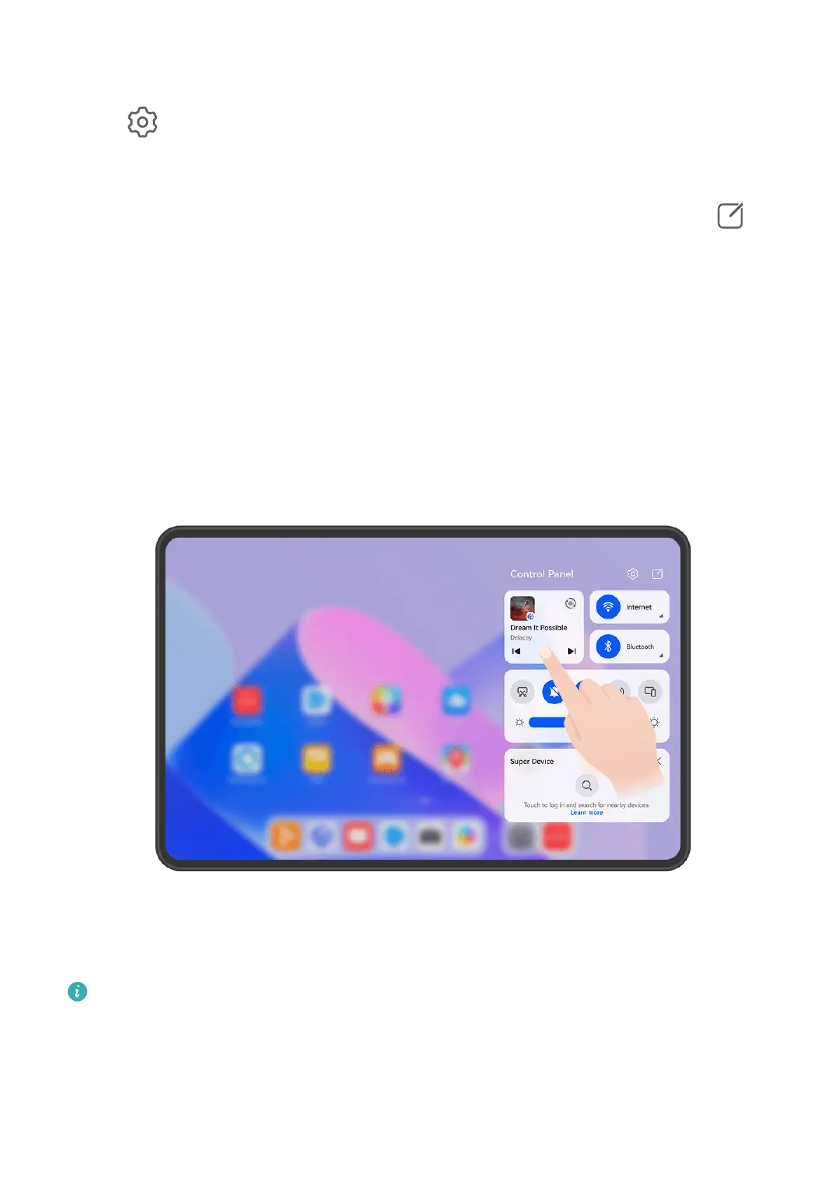 Swipe down from the upper right edge of the screen to display Control Panel, go to