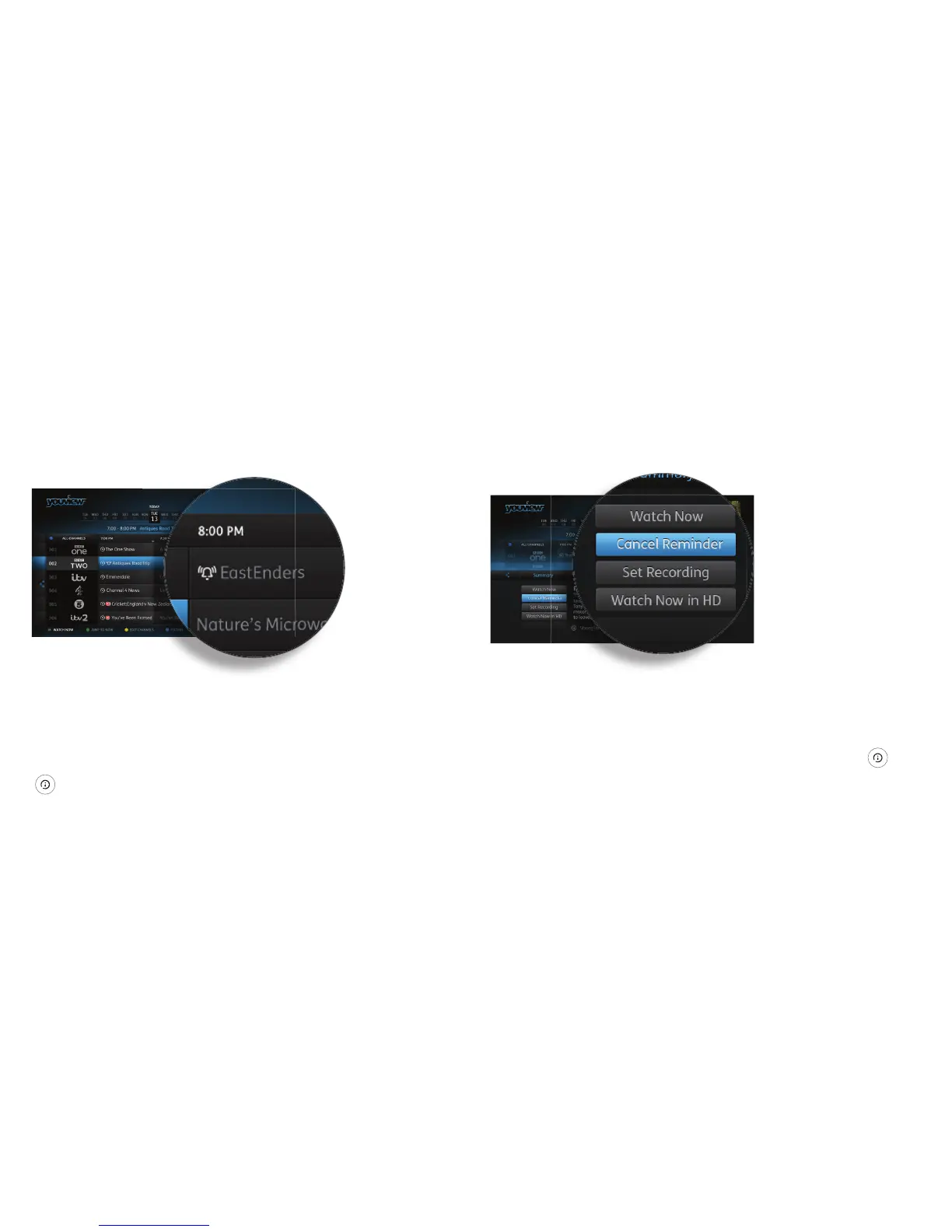 You can also set a reminder from a programme’s Information Panel. Press