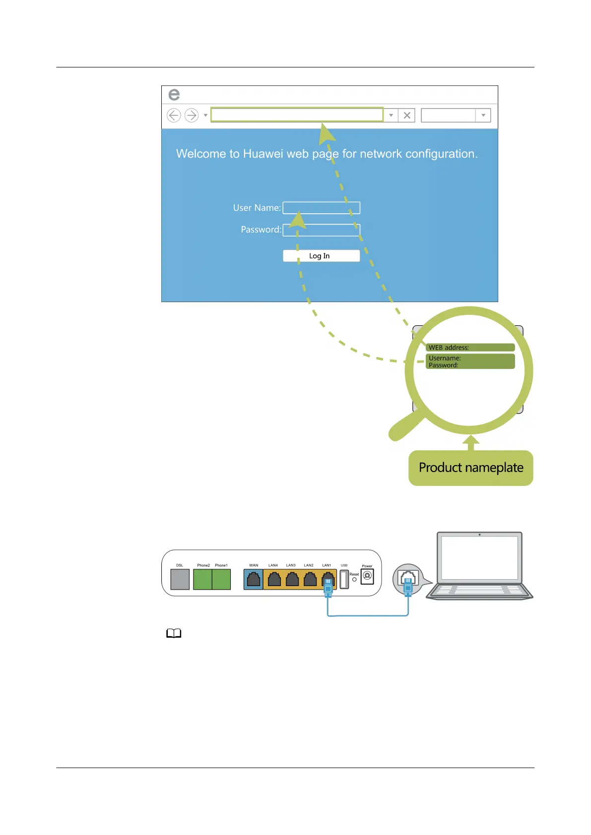 The preceding cable connection diagram and login pages are only for reference, and