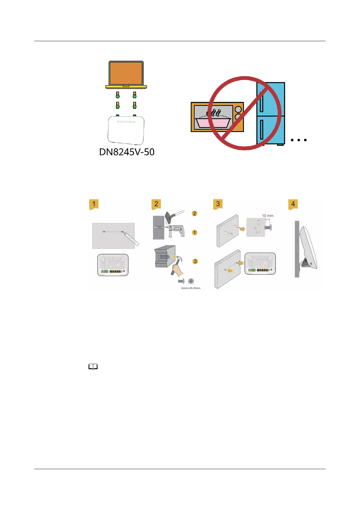 heads of the screws 10 mm over the wall. Then, install the DN8245V-50.