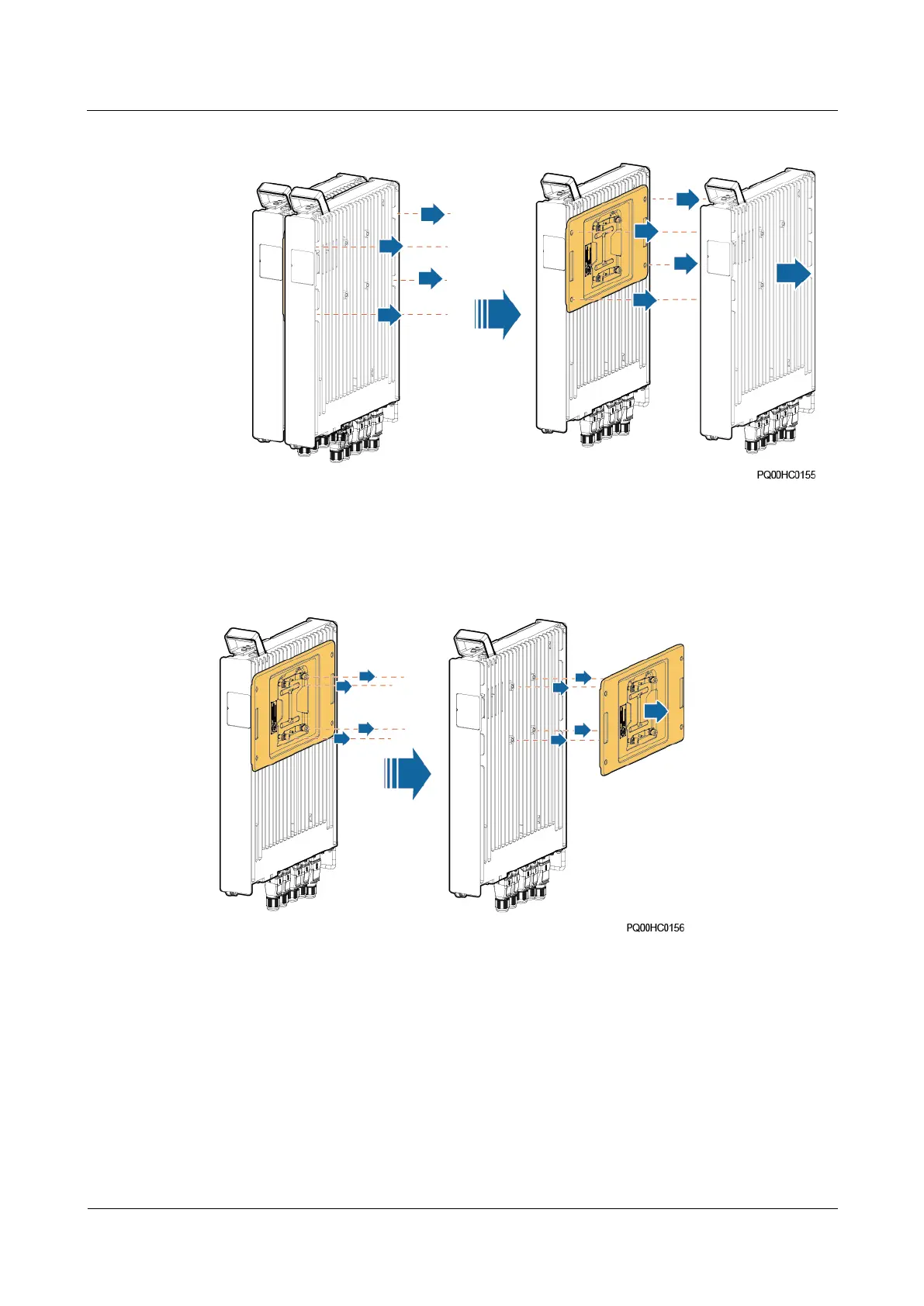 8. Loosen the four screws that secure the connecting kit to the PSU and take off the