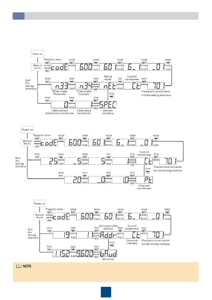 Set wiring mode (three-phase four-wire or three-phase three-wire) and channel