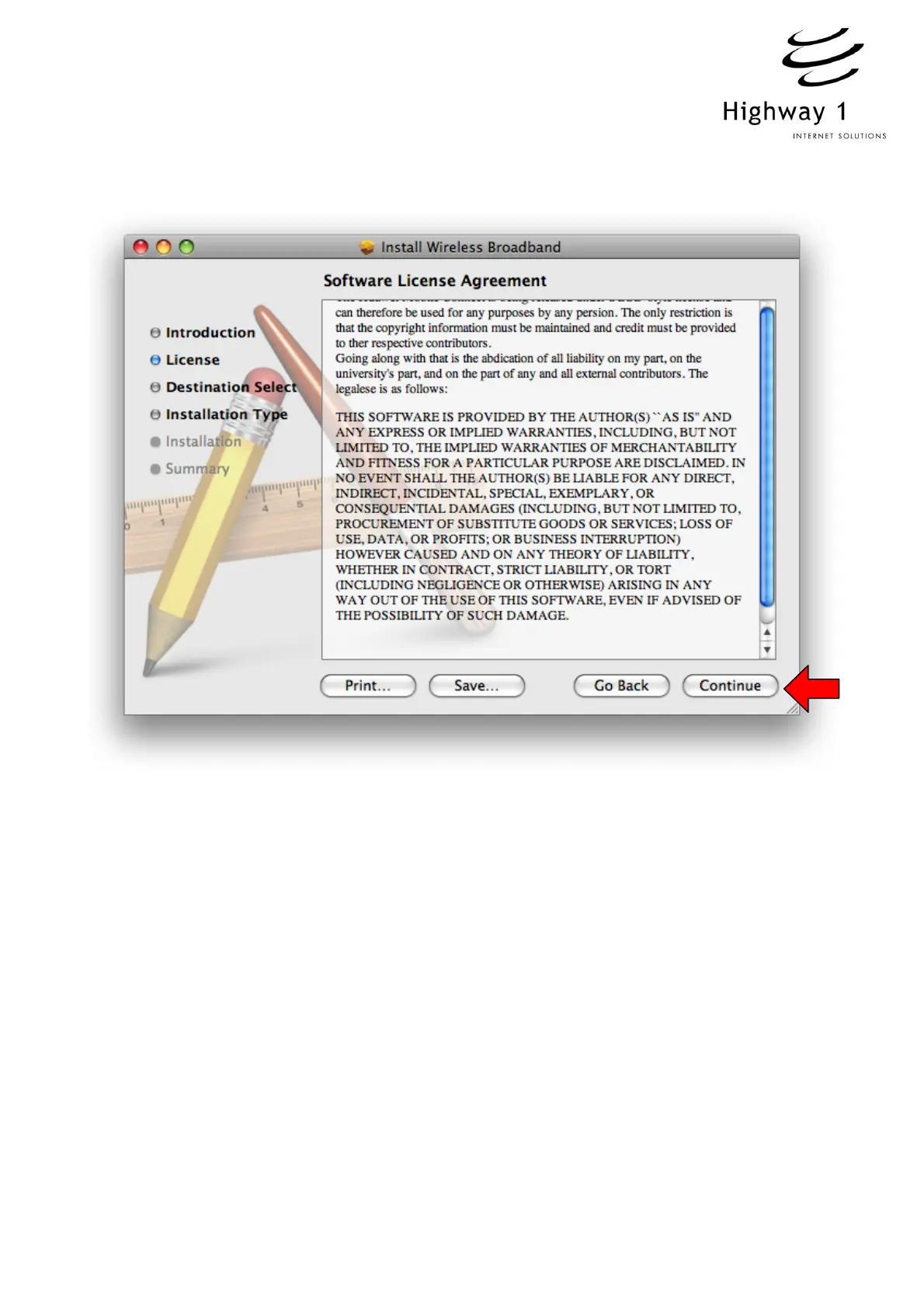 b. “Software License Agreement”, click “Continue”, if prompted to agree to the