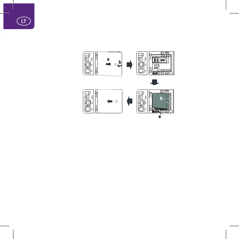 USIM kortelės ir baterijos įdėjimas