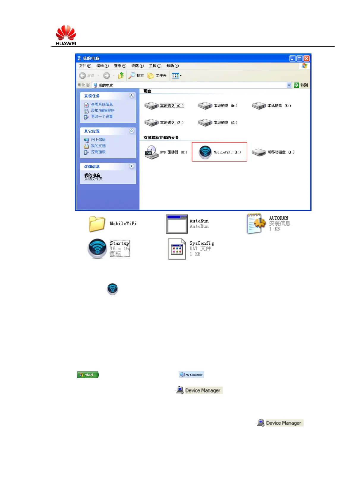 Device‖ and ―HUAWEI Mobil Connect– 3G Network Card ‖ displayed in .