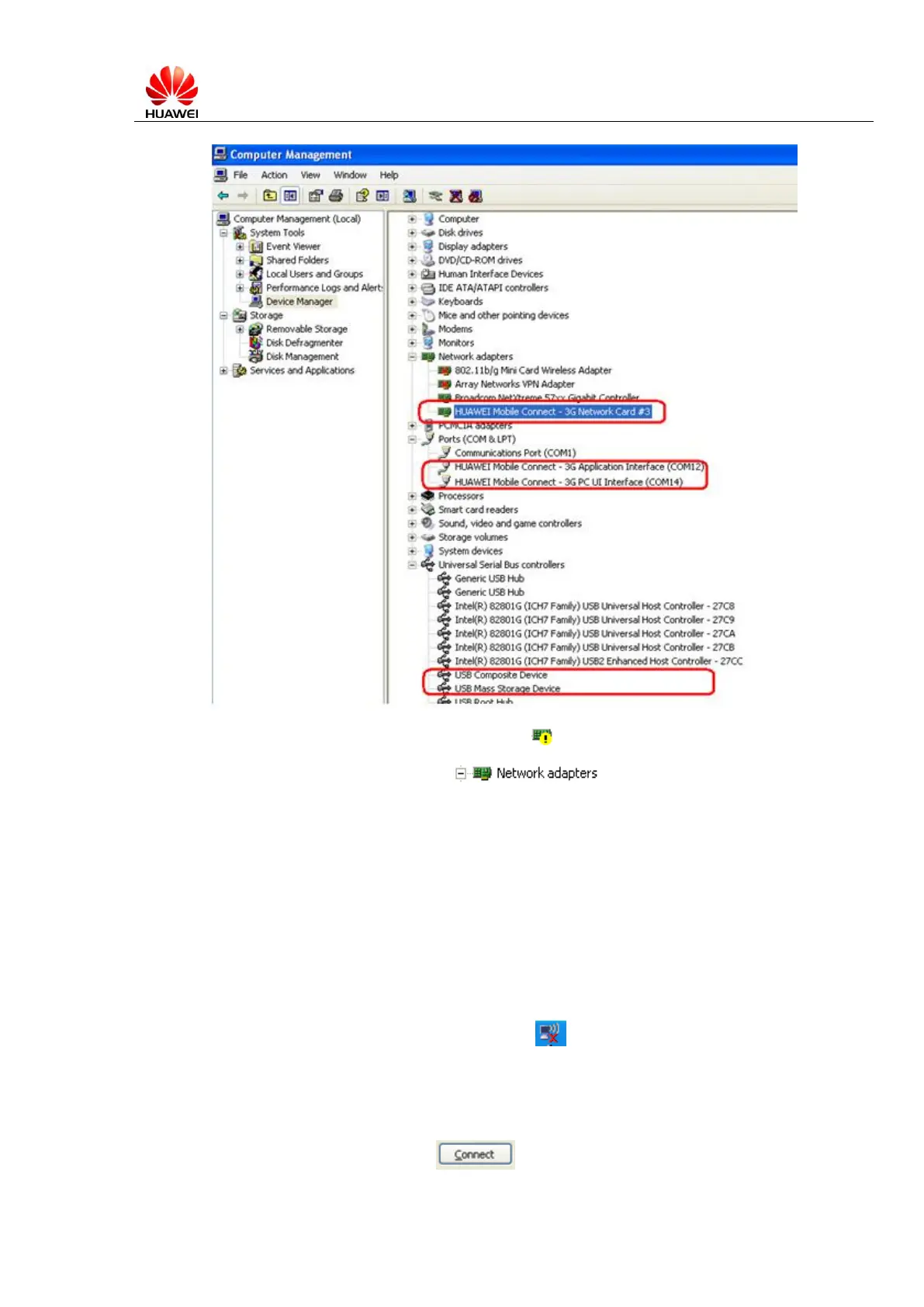 If ―HUAWEI Mobil Connect – 3G Network Card‖ shows , right click it then select ―Uninstall‖. Re-load