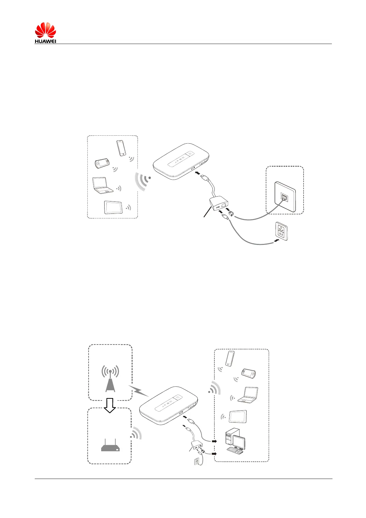 The E5373s-155 allows you to access the Internet via LTE/3G or Wi-Fi. When you are