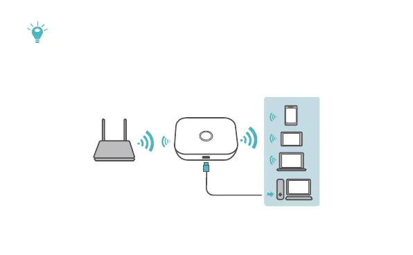 La funzionalità extender Wi-Fi aumenta la copertura Wi-Fi e consente di connettersi alle reti Wi-Fi,