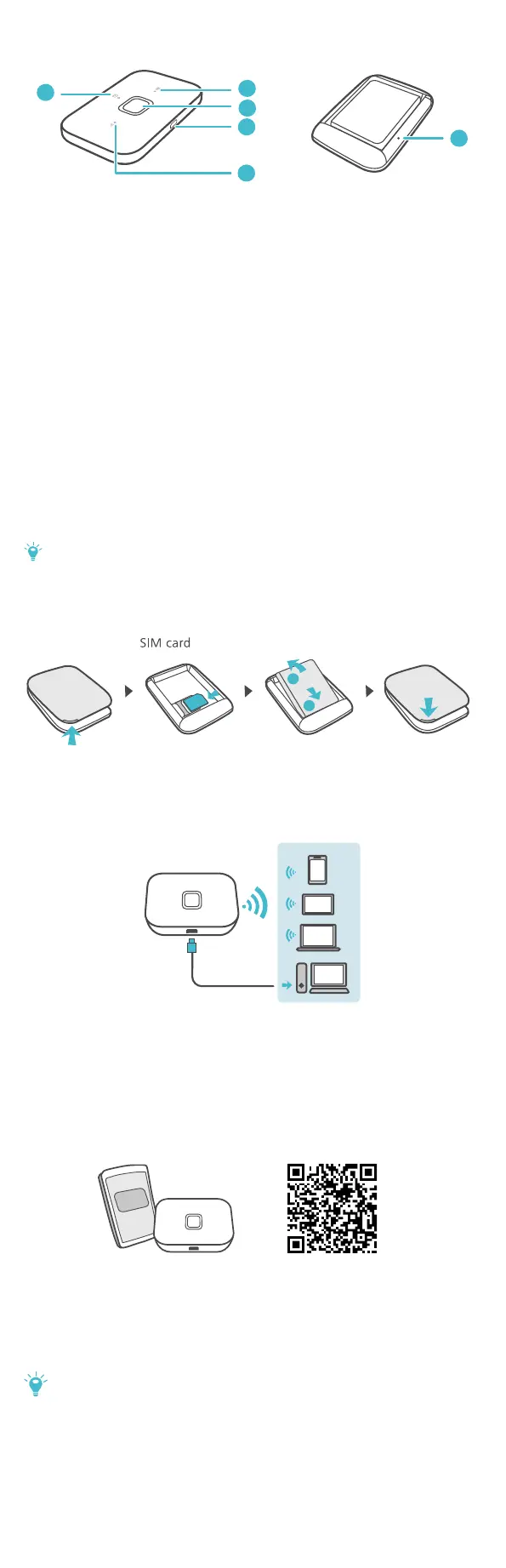 Press and hold to restart your Mobile WiFi and restore it to its factory
