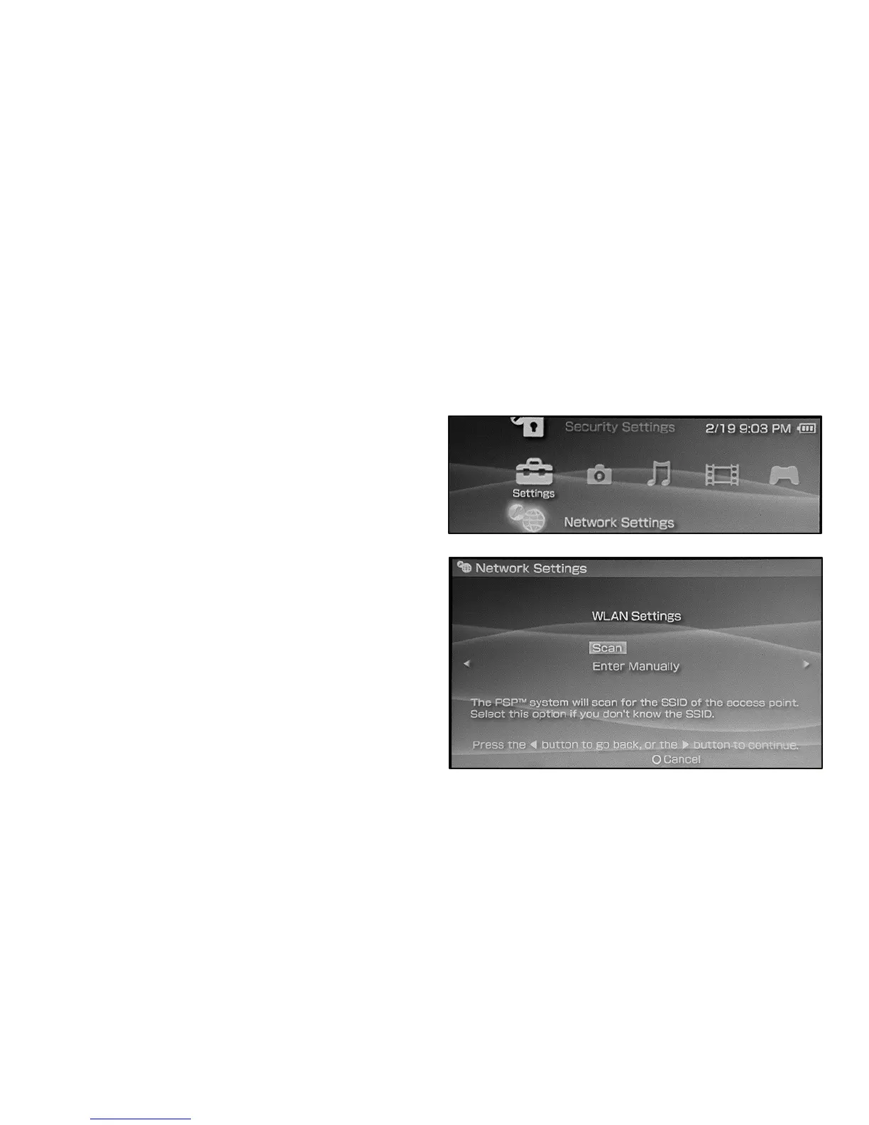 the PSP. Confirm the SSID, and enter the