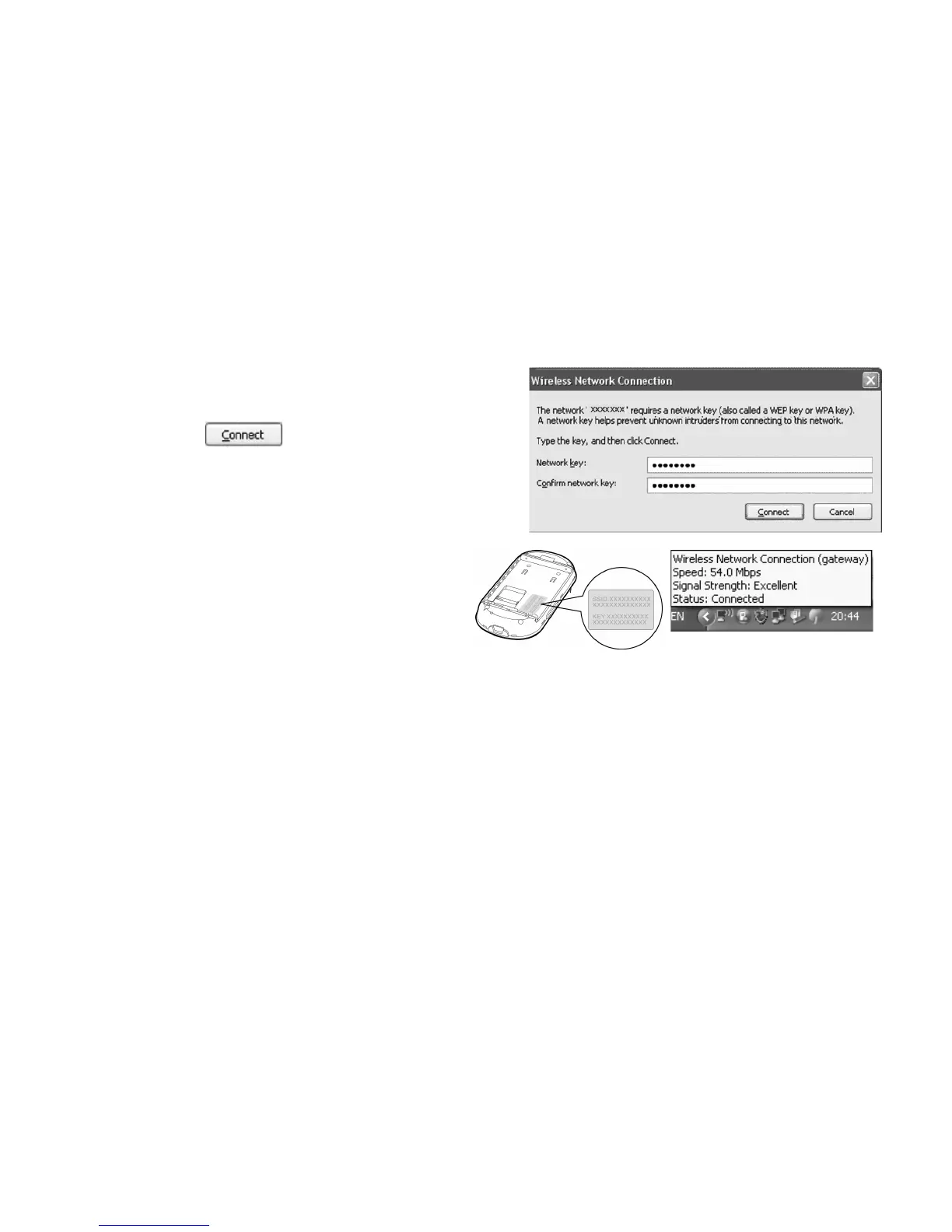 Wait for a while. The wireless connection icon displays in the status area in the lower right