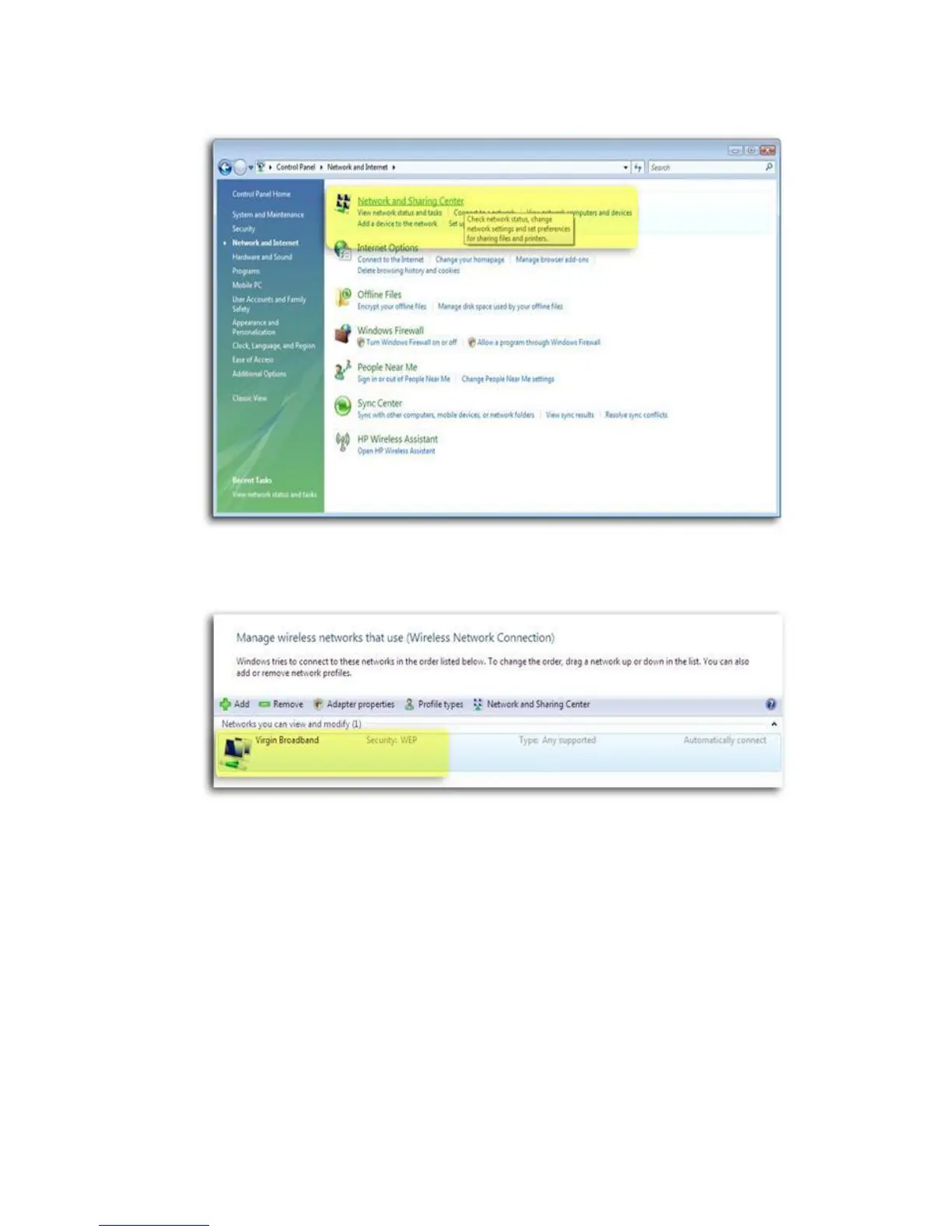 4. Click Network and sharing center.