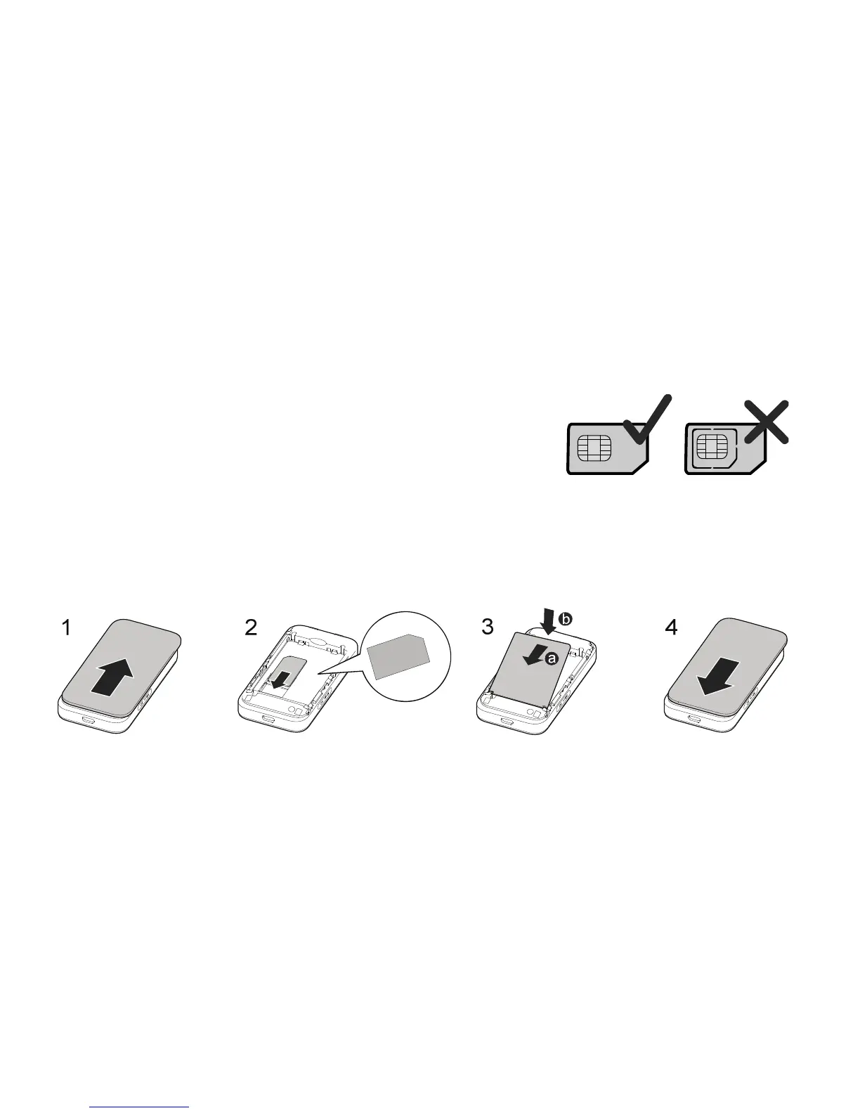 Insert the SIM card in the card slot. Be sure that the SIM card is facing in the right direction,