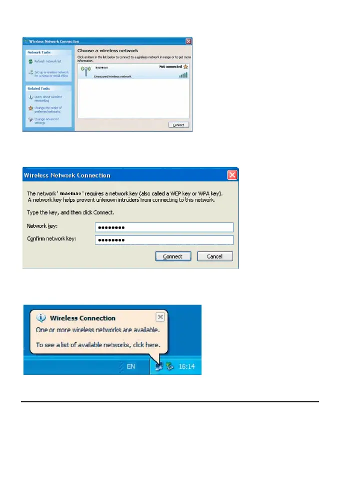 4. If encryption parameter is set for the E960, the Wireless Network Connection appears