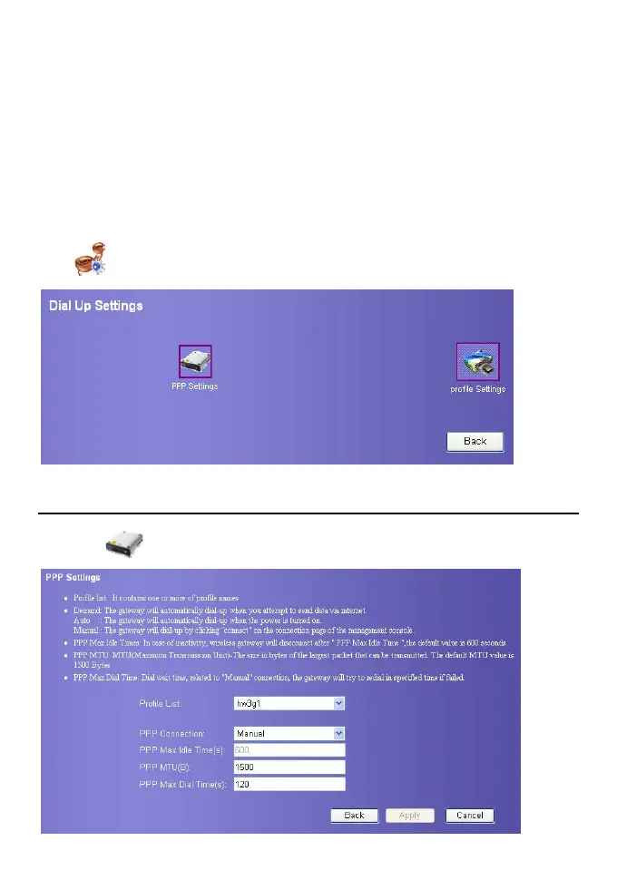 . The dial-up setting page displays as following figure.