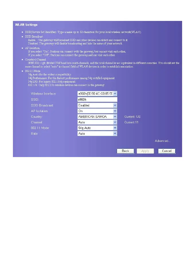 Wireless Interface: It refers to the SSID and MAC address used to identify the gateway.