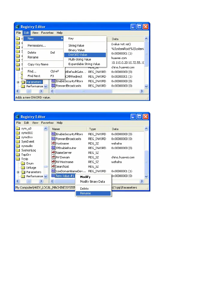 6. Right-click TcpWindowSize and then select Modify in the shortcut menu.