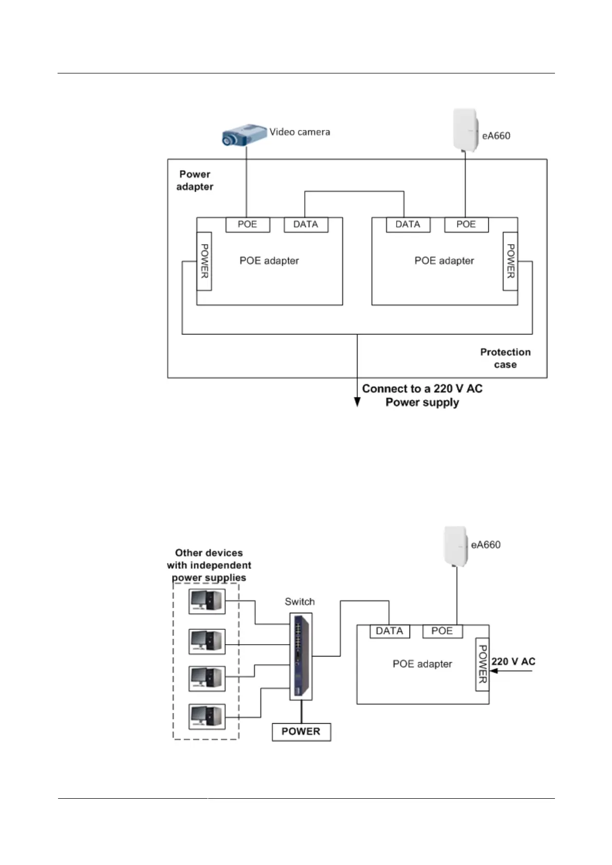 to multiple devices, connect the power adapter to a Hub or switch and then to the eA660,