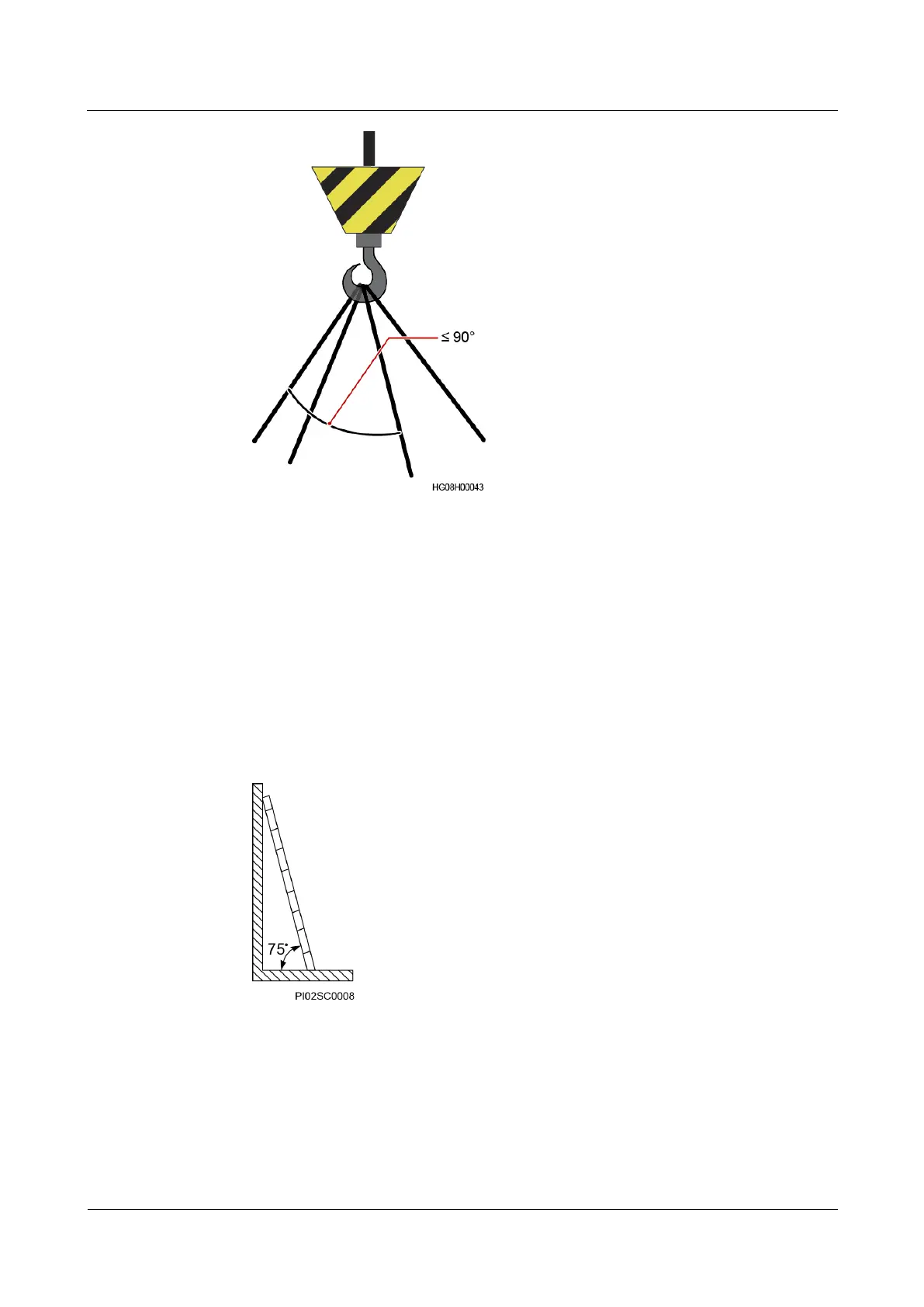 used to measure the angle. Ensure that the wider end of the ladder is at the bottom, or