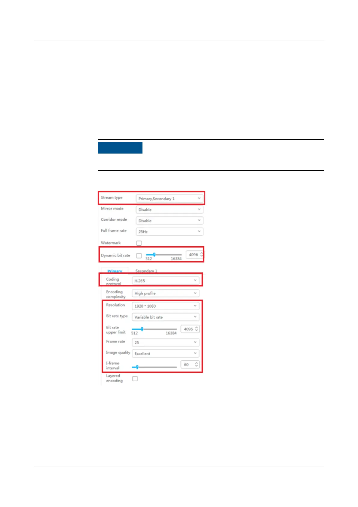 Figure 6-16 Setting primary stream parameters