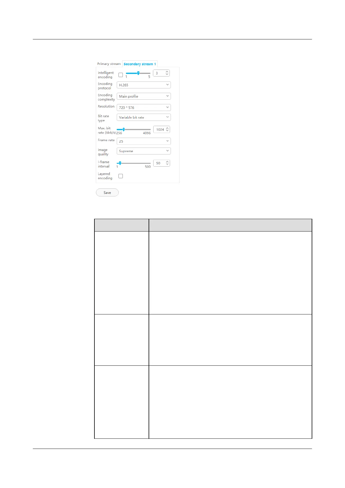 Figure 6-42 Setting secondary stream 1 parameters