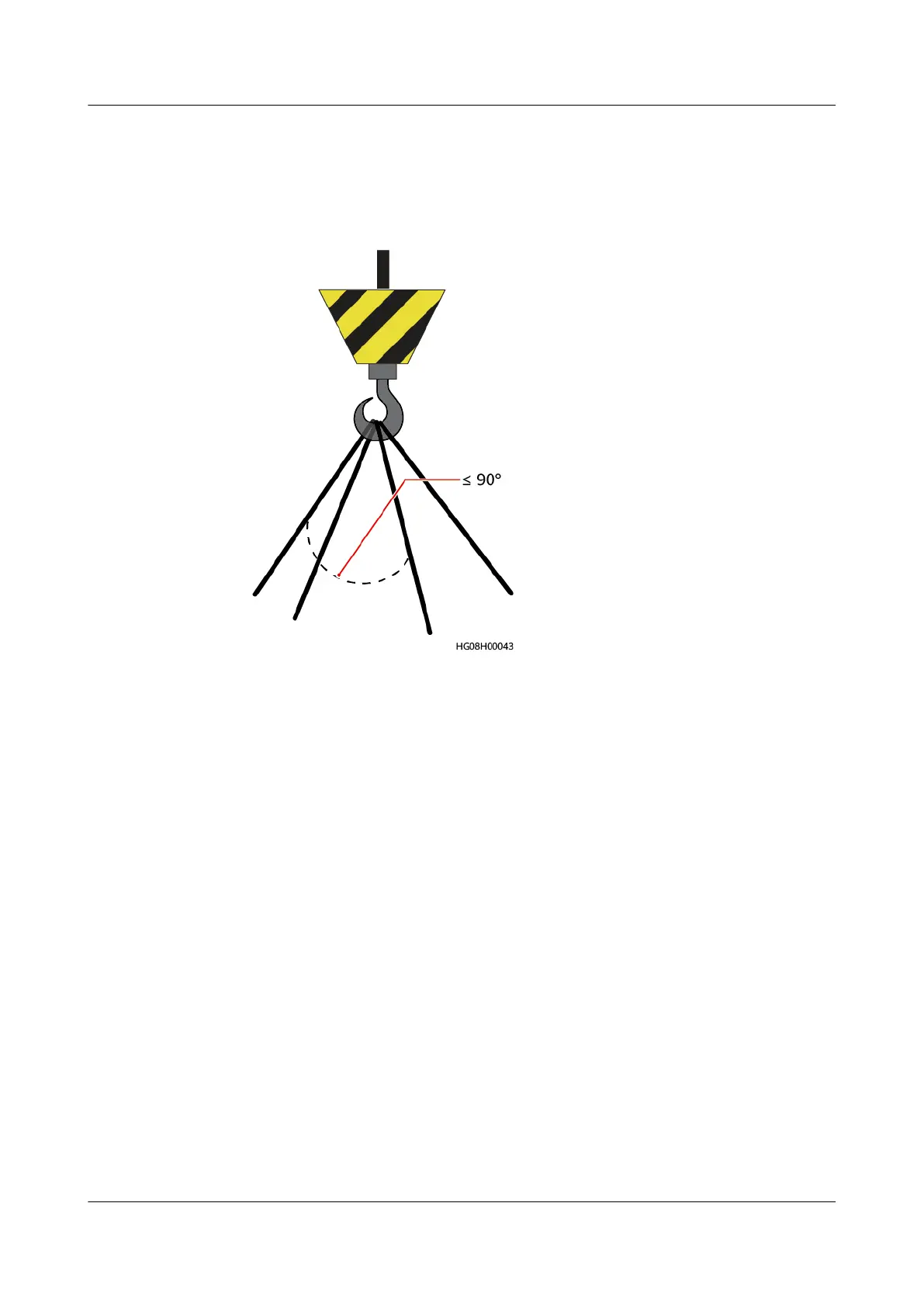 ● Ensure that the angle formed by two hoisting cables is no more than 90