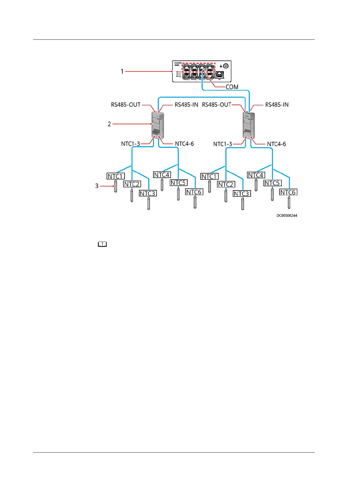 ● A maximum of eight T/H sensors can be cascaded to each COM port.