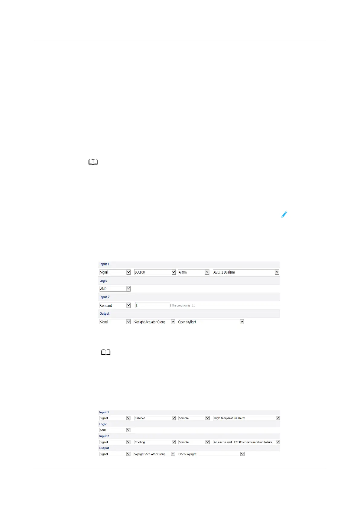 ● Set Linkage Logic List parameters for Link high temperature with skylight