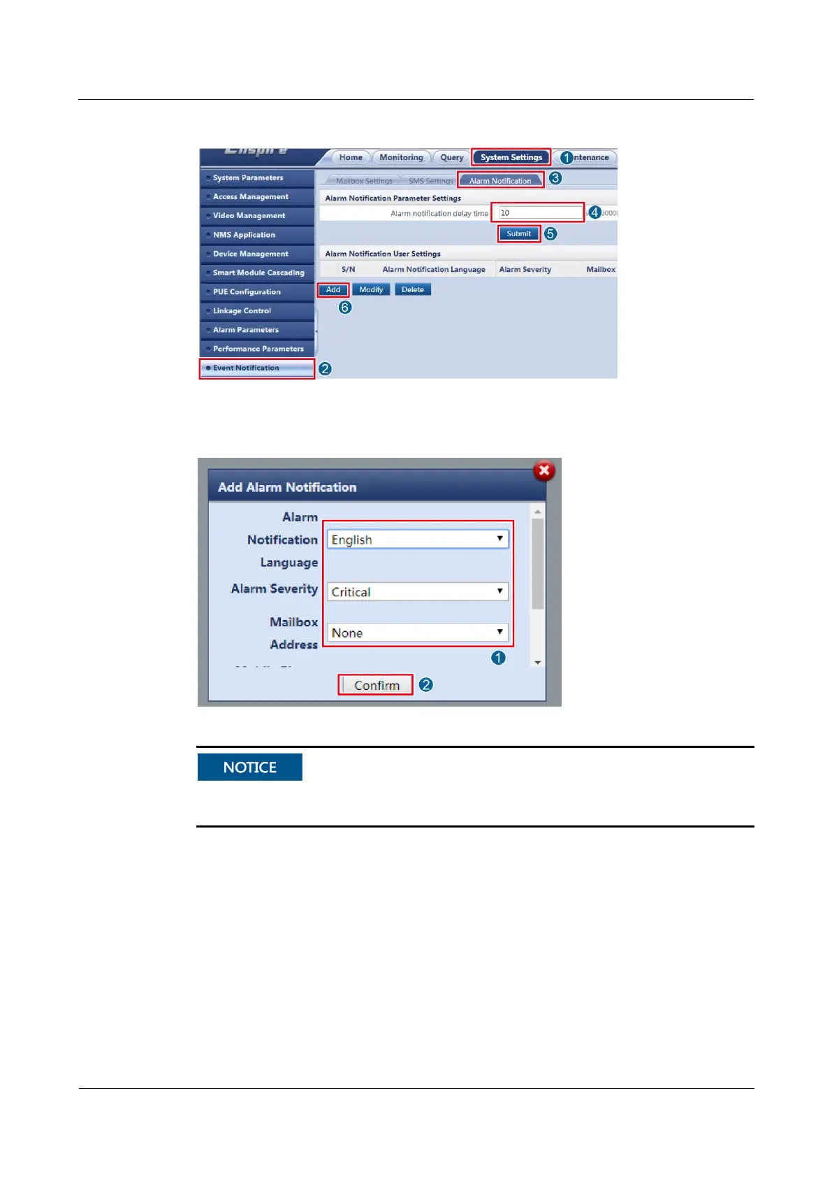 Mailbox Address in Alarm Notification can be selected after it is added in Mailbox