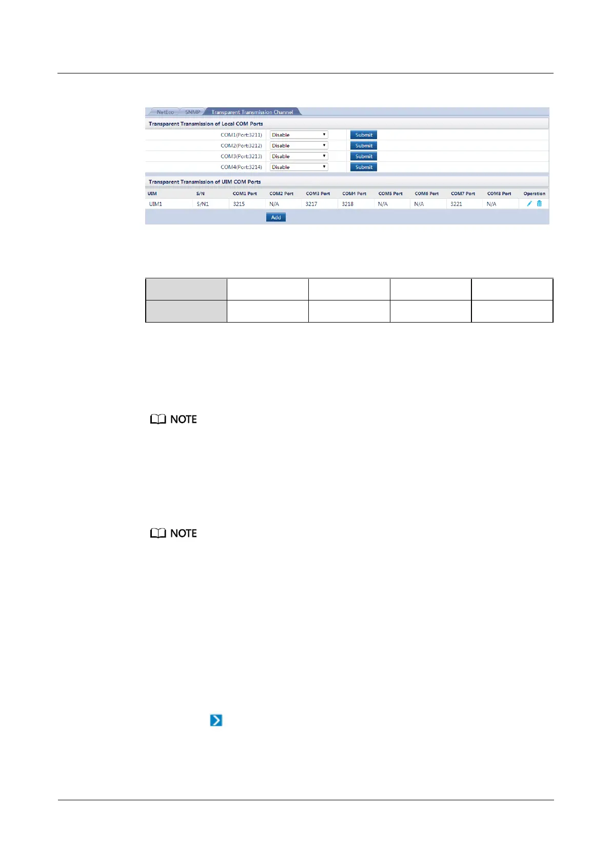 displayed on the WebUI after transparent transmission is enabled for the COM port and the