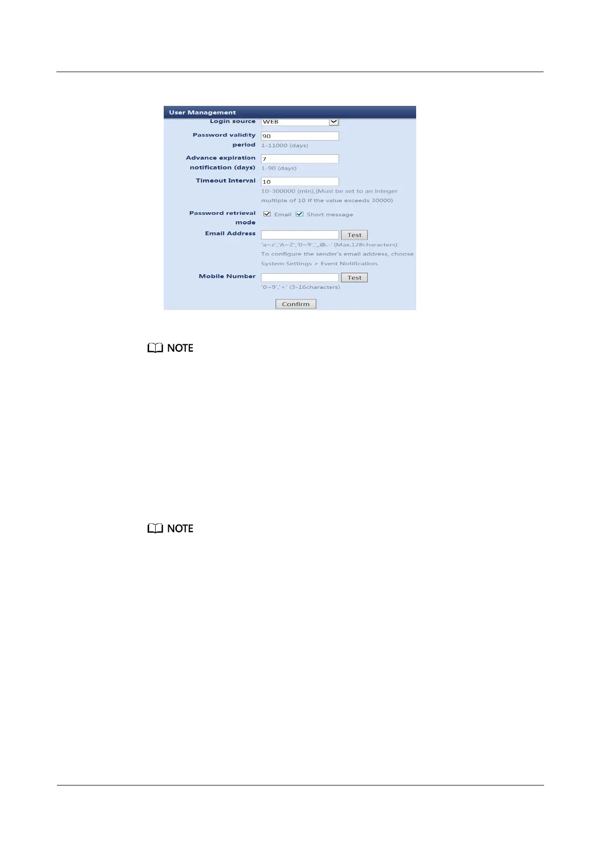 3. Specify User name, Password, Confirm password, Password validity period,