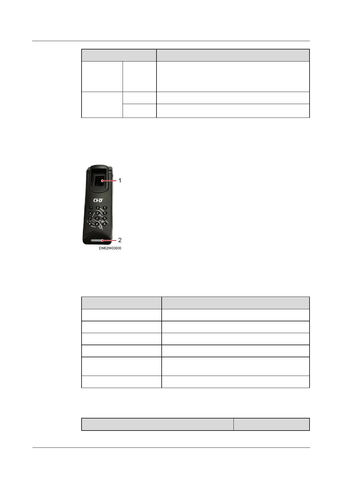 Table 3-31 Specifications for the fingerprint and card reader with a keypad