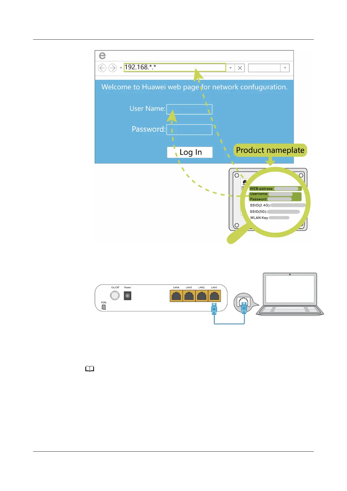 192.168.18.1 (for the web address of the Huawei ONT, see the product