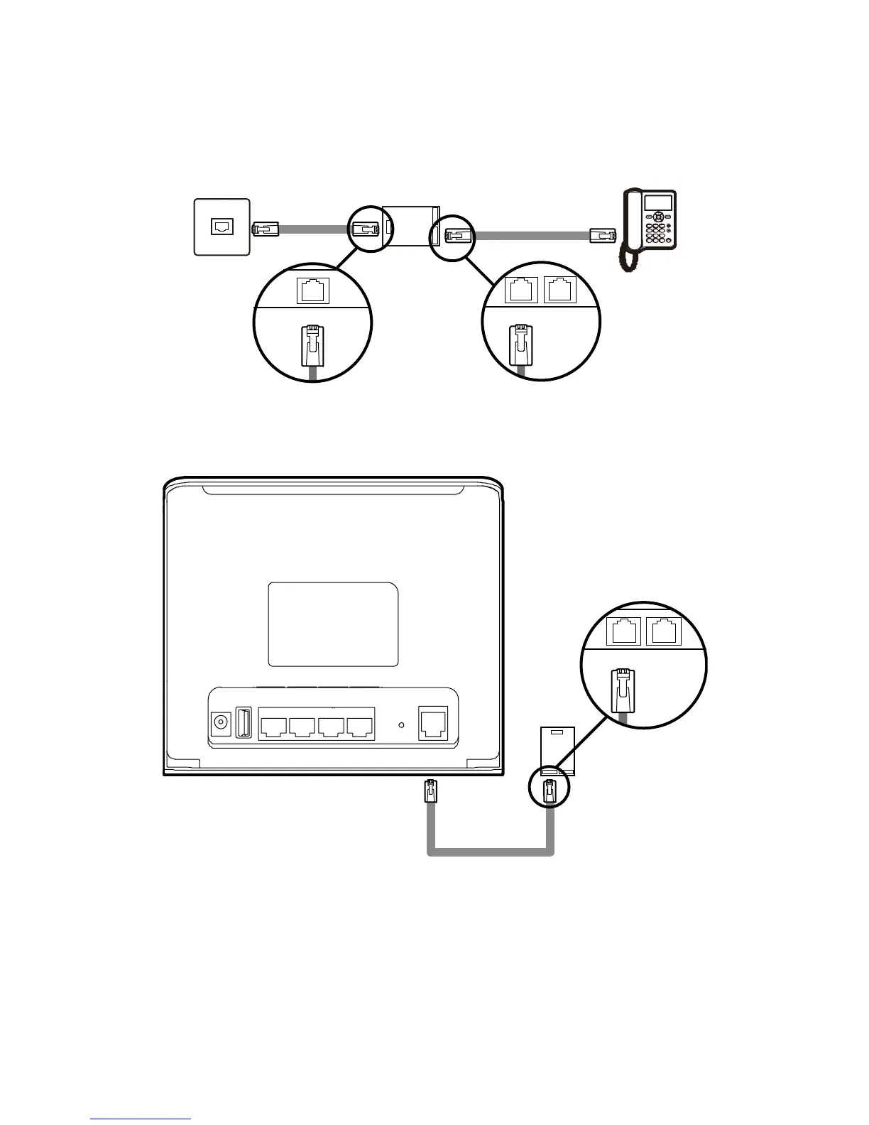 Connect the telephone jack on the wall to the LINE interface on the splitter