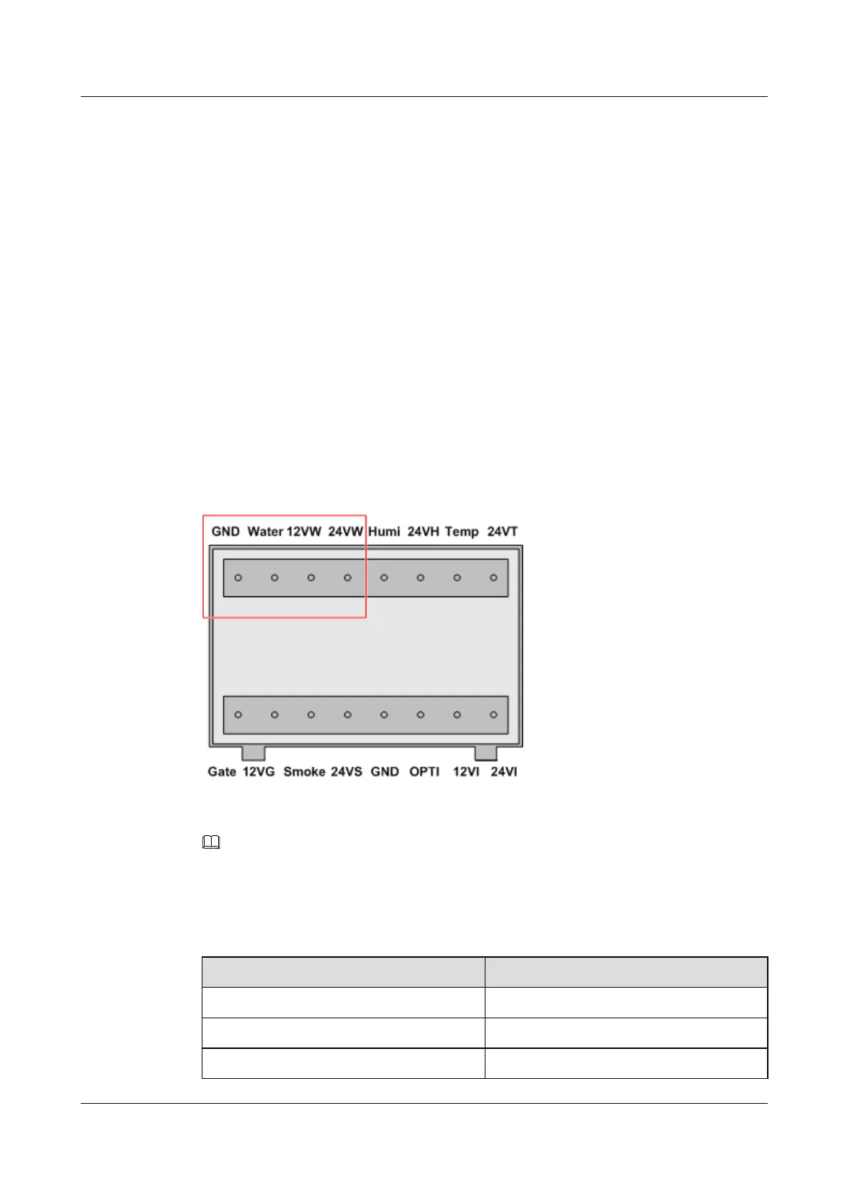 Table 2-4 lists the meanings of the terminals of the monitoring port for the water sensor.