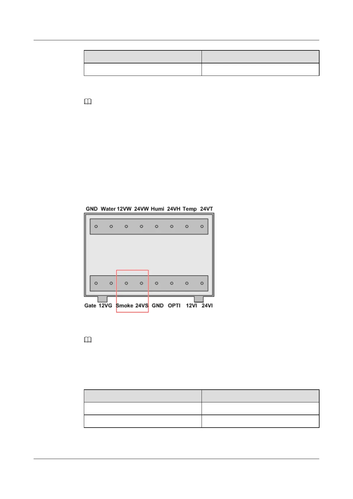 Table 2-5 lists the meanings of the terminals of the monitoring port for the smoke sensor.