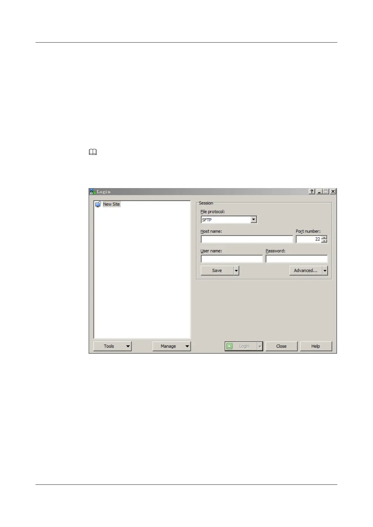 The WinSCP Login dialog box is displayed, as shown in Figure 3-9.