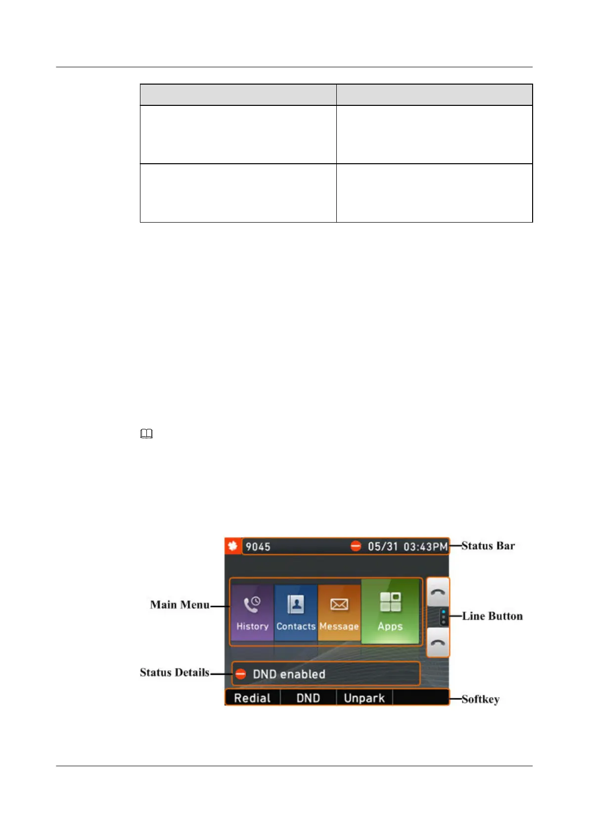 Figure 3-3 eSpace 7910 home screen in classic mode
