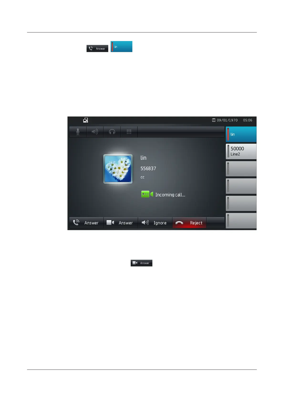 Figure 4-4 Incoming video call screen