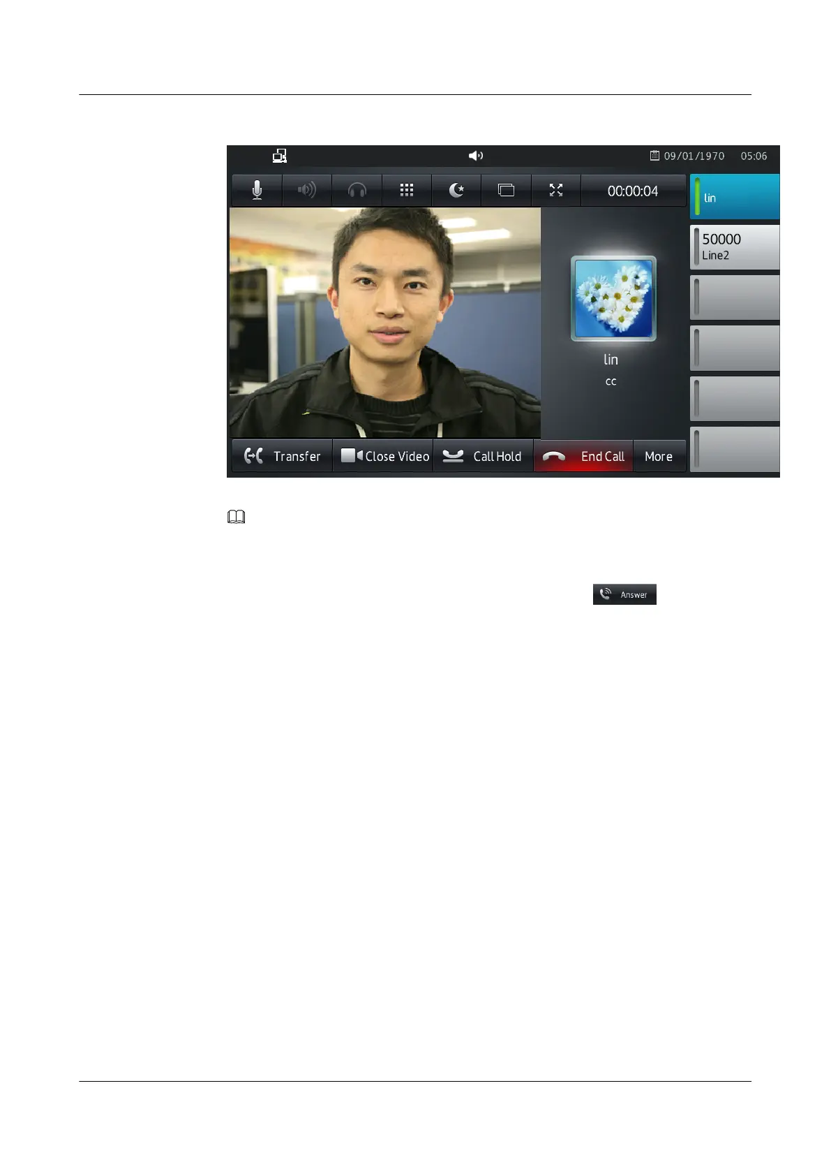 Figure 4-5 Answering an incoming video call